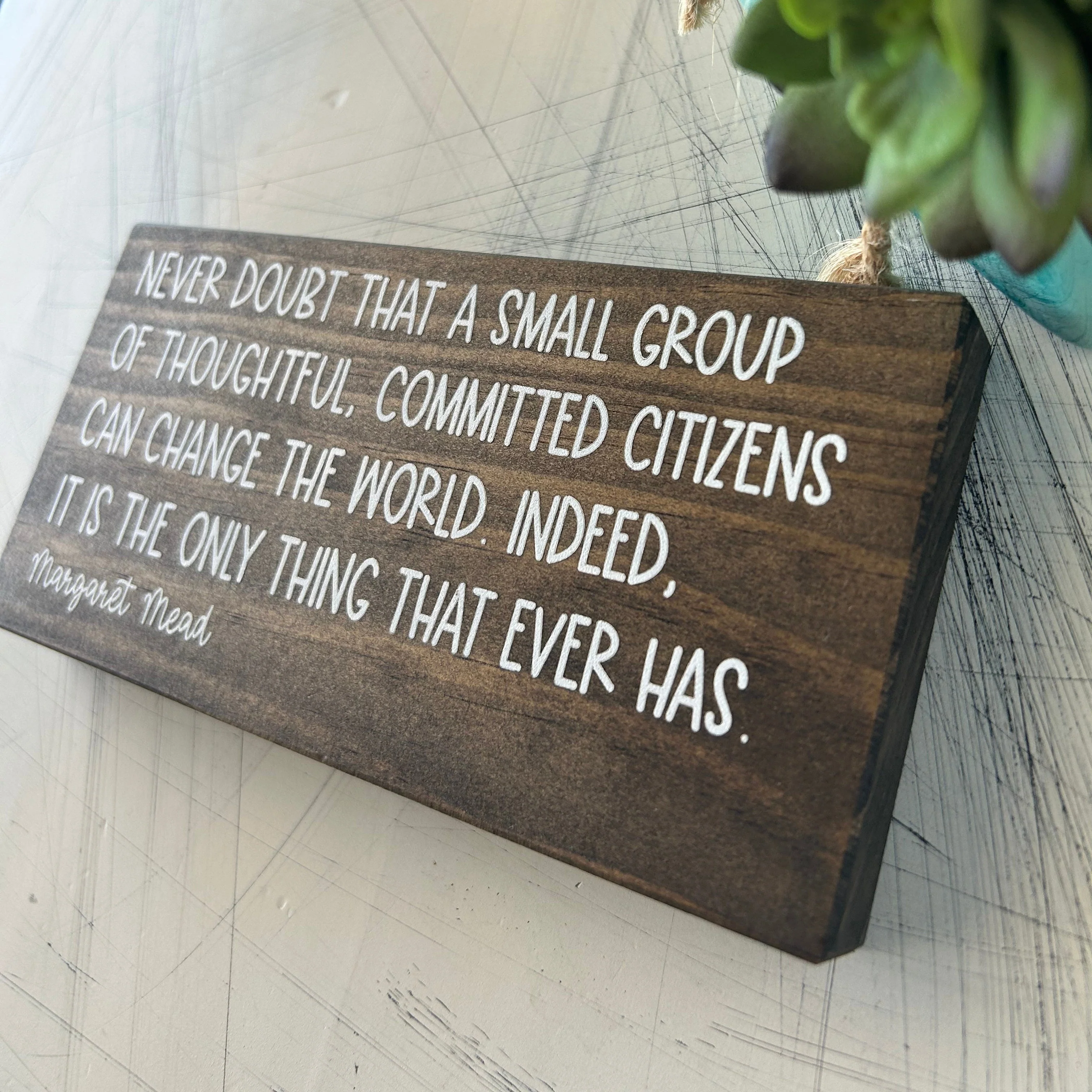 Never doubt that a small group of thoughtful, committed citizens can change the world - Margaret Mead - mini wood sign
