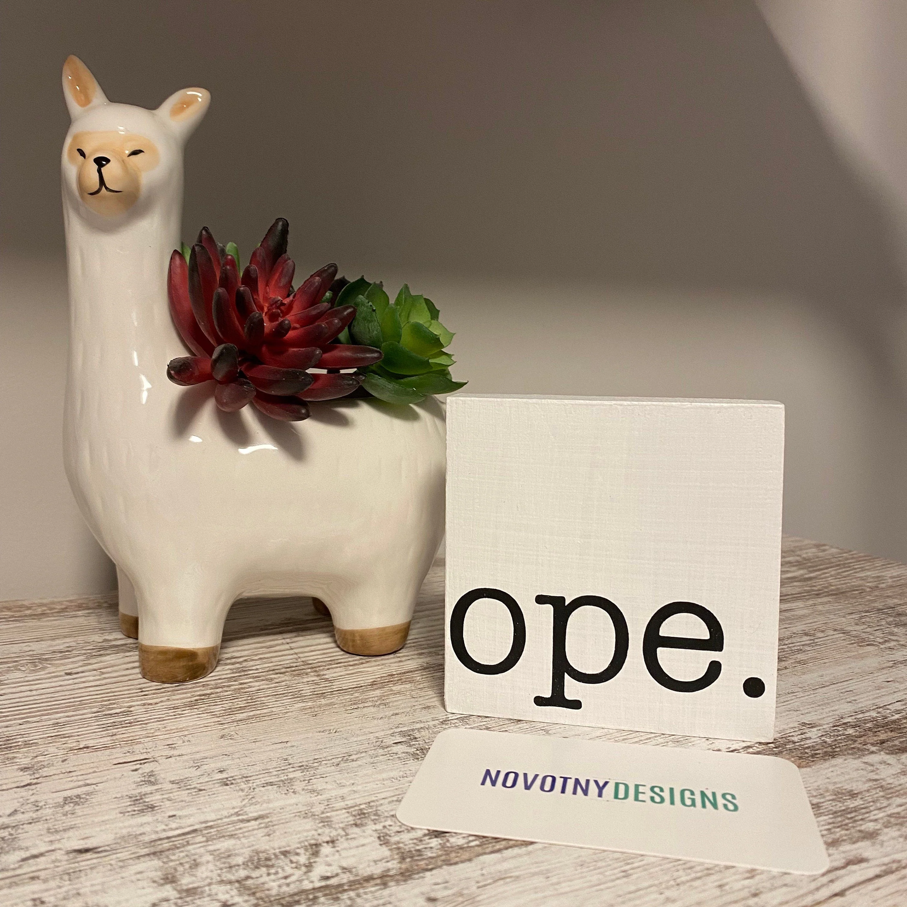 This mini wood sign is available in white with black lettering, black with white lettering, or mocha with white lettering and hand stained and/or painted. Sign measures approximately 3.5 inches x 3.5 inches x 0.75 inches. Individual sizes and finish will vary slightly due to handmade nature of each item.