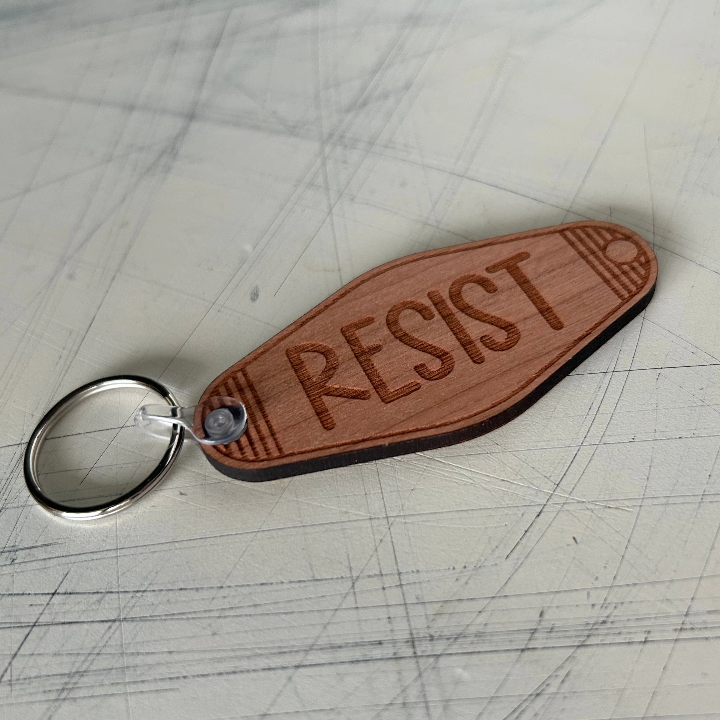 Resist. A small reminder that you're part of an ever-growing coalition of folks who know we deserve better. Proudly part of the resistance! Engraved cherry wood features an engraved, lined design.